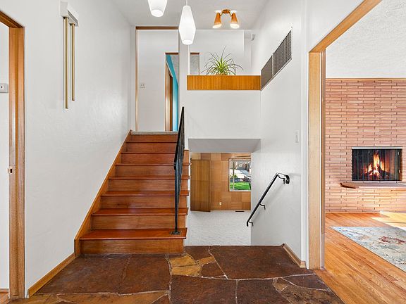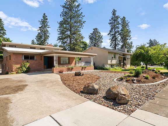 Exquisite Mid - Century Modern masterpiece just a short distance from coffee shops, Manito Park, and Sacajawea Middle School. With its timeless design, this home features pristine hardwood floors and freshly painted interiors. The updated kitchen boasts stainless steel appliances and a view into the beautifully landscaped backyard, filling the space with natural light. The expansive living and dining areas are ideal for entertaining, anchored by a gorgeous fireplace to create the perfect ambiance for any gathering. Upstairs, find serene bedrooms with ample natural light and a bathroom on each floor of the home. The two-car detached garage and additional shop provide plenty of space for storage and projects. The zero-scaled front yard enhances curb-appeal, while the raised garden beds in the backyard offer a tranquil retreat for gardening enthusiasts. ~5000 credit paid at closing towards central AC install~