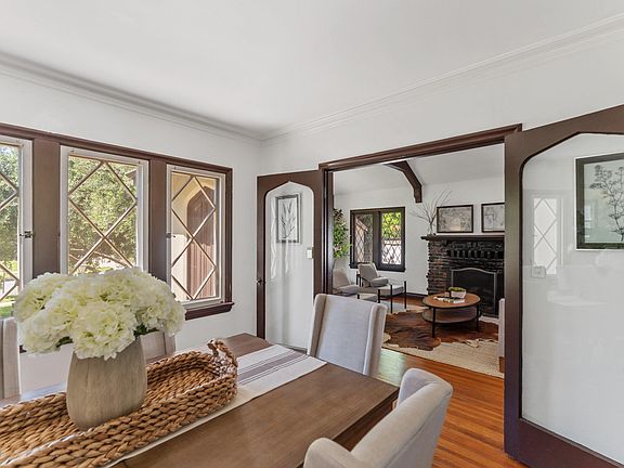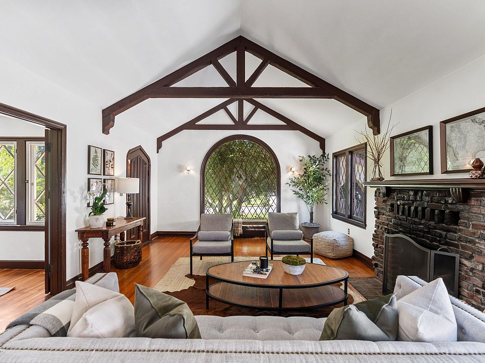 Charming 1925 Tudor Revival, located on a quiet street in the Orange Heights area of Pasadena. The home welcomes you into a stately living room with cathedral beamed ceilings, leaded glass windows and hardwood floors that continue into the dining room. The breakfast nook/family room opens to the kitchen featuring stainless steel appliances and corian countertops. There are two bedrooms, one and a half baths. The beautiful, private backyard features a built in brick barbecue, fruit trees and brick patio and walkway.