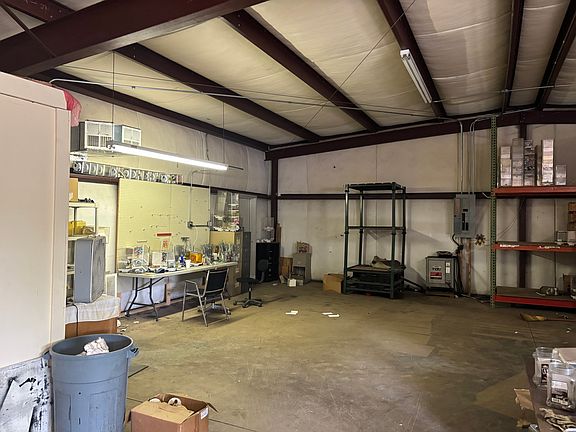 Fenced in lotSmall office areaRoll up garage doorCentral air and heatOne bathroom