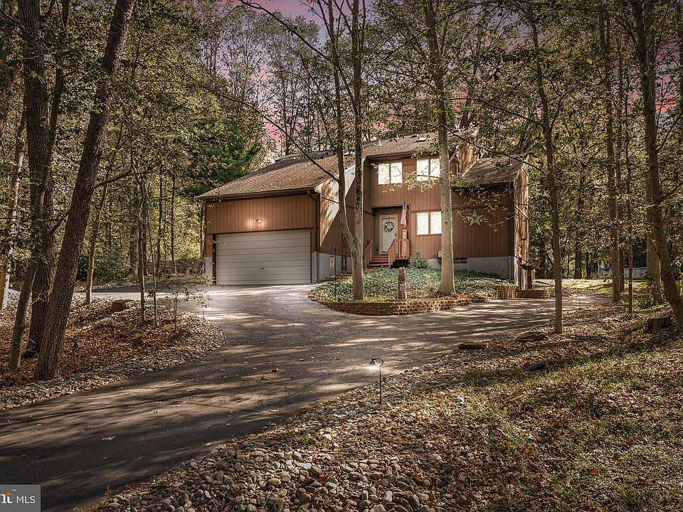 Rare Find in Hanover Hills! This beautifully maintained contemporary style home is located in the highly sought-after Hanover Hills community of North Hanover Township. As you enter the home, you’re welcomed by a spacious foyer that flows into the living room, featuring vaulted ceilings, skylights, and an inviting sunken fireplace with cozy seating. Oversized sliding glass doors fill the space with natural light and open to a spacious two-tiered deck perfect for entertaining or relaxing outdoors. The formal dining room also offers sliding doors to a second deck for seamless indoor-outdoor living. The updated kitchen features natural cherry soft-close cabinetry with custom crown molding, granite countertops, a breakfast bar, under-cabinet lighting, stainless steel counter-depth refrigerator, an energy-efficient two-drawer dishwasher, and ceramic tile flooring. The main level includes two bedrooms, one currently used as an office, and a full bath. A spiral staircase leads to the second floor, where the oversized primary suite boasts vaulted ceilings, skylights, walk-in closet, and an adjoining primary bath offers a jacuzzi soaking tub. Additional features include a convenient second-floor laundry room, Andersen sliders and windows, along with a Pella full-view storm door, a reverse osmosis system which provides exceptional water quality, and a new water softener which is currently being added. This home has been thoughtfully updated with modern comforts including the roof and Vellux skylights were replaced in 2018, new flooring, basement oil tank was replaced in 2013, a new well pump was installed in 2014, and the septic system was updated in 2007. For peace of mind, the property includes a whole-house 20kW Generac generator and an ADT security system. A home warranty will also be included with the sale. Conveniently located just minutes from Hanover Golf Club, 195, Great Adventure, and Joint Base MDL. Don’t wait to schedule your appointment!