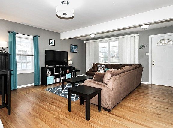 Absolutely adorable! Pride of ownership! Located on a pretty tree lined street with quick access to Rt 20 and train station! Deep lot! Long driveway leads to the detached garage! Enter to cozy living room with hardwood floors, custom lighting and plenty of natural light from multiple windows! Very functional eat-in kitchen with upgraded oak cabinetry, stainless steel appliances, fan and plenty of counter space! Convenient 1st floor bedrooms! Updated hall bath with custom tile work and new vanity and sink! Oversized 2nd floor bedroom could be master bedroom or flex room! Lots of space! Finished lower level rec room with full bath with shower and extra storage room/laundry! Huge patio space! Tastefully done throughout! Newer A/C '16! Move in ready! Won't last long! Close to shopping and schools!