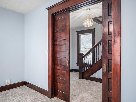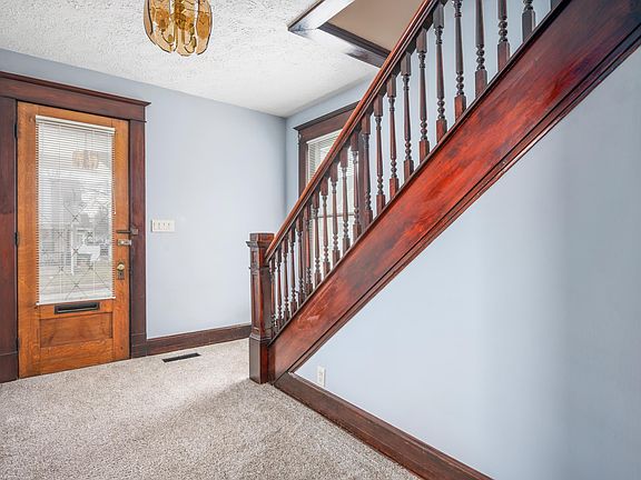 This early 1900s two-story home offers a modern renovation while preserving the historic charm. The entryway, staircase, pocket doors, and refinished woodwork all showcase the original design. The remodeled kitchen has brand-new cabinetry, Corian counter tops, breakfast bar, and coffee/serving bar. The room is well lit with pendant, recessed, and undercounter lighting. All Jenn-Air appliances are included. The main level also offers a home office and full bathroom with walk-in shower. Upstairs are 3 spacious bedrooms and a second full bathroom. The basement offers an exceptional amount of storage space, laundry, and tiled shower. The home rests on a .134 acre corner lot complete with spacious back lawn.