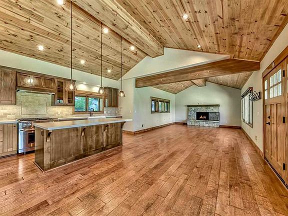 Nothing is left to be desired in this beautifully remodeled split-level home. With easy access, mountain views and an excellent floor plan, all of the finishes are top of the line. Sunlight floods in through the many windows into the open-concept living space with vaulted knotty pine ceilings. The living room is centered by a natural stone fireplace and the kitchen has quartzite counters, stainless appliances and an island giving plenty of room for cooking and entertaining.