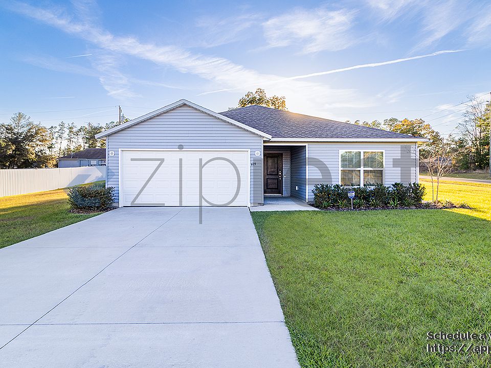 Welcome to your new home at 619 Marion Oaks Boulevard in beautiful Ocala, FL. Previously MODEL Home Property Features: Blinds and curtains installed, digital/smart lighting throughout, 2-car garage. This charming single-story residence boasts a modern design with a spacious open floor plan. The inviting exterior features a well-maintained lawn and a two-car garage, providing ample parking space. As you step inside, you'll be greeted by a bright and airy living area with large windows that allow natural light to flood the space. The sleek kitchen is equipped with stainless steel appliances, pristine white cabinetry, and a generous island, perfect for culinary enthusiasts and entertaining guests.