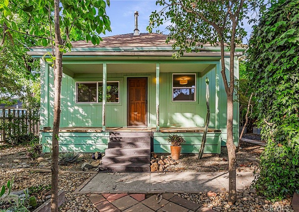 This house is a perfect blend of modern updates and bohemian charm, complete with a 400sqft detached guest house that is NOT included in the original square footage! Entering the main home, you're greeted by the cozy yet spacious living room, featuring a freestanding stove that adds warmth and character. The layout is open and inviting, with an airy feel that's enhanced by the arched doorframe leading to the kitchen. The kitchen itself is a focal point, with beautiful wood accents, white cabinets, butcher block countertops, and a playful black and white tile backsplash. The dining nook adds to the charm, making it a delightful space for meals and gatherings. The main house boasts three bedrooms, each with its own unique features. The front bedroom, conveniently located off the living room, offers flexibility as either a bedroom or office space. Towards the back of the house, two more bedrooms provide comfort and privacy. One of them features a spacious walk-in closet and French doors that lead out to the backyard, bringing the outdoors in. The bathrooms in the main house are equally charming, with updated fixtures and delightful touches like a freestanding tub and stylish tile. Throughout the home, updated lighting fixtures add a modern touch, while fun updates contribute to the overall vibe. Outside, the spacious backyard beckons with its potential for relaxation and gardening. The detached studio at the back of the property adds another layer of appeal, with its updated interior featuring a spacious living area/bedroom, wood panel ceilings, and an updated kitchenette with butcher block counters and floating shelves. The updated bathroom and walk-in closet complete the studio, making it a cozy retreat for guests or a creative space for work or hobbies. Overall, this house offers the perfect combination of comfort, style, and charm, both inside and out. It's a place where modern living meets bohemian flair, creating a welcoming place to call home.