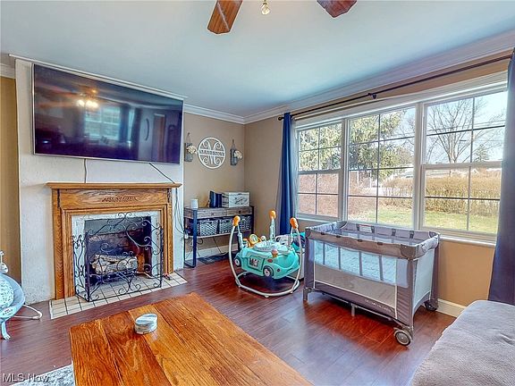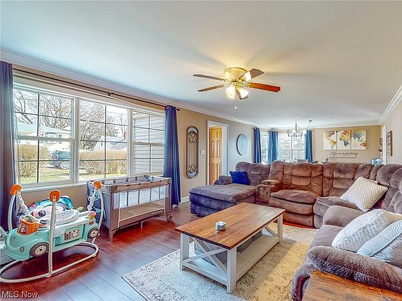 Located in the heart of Cadiz, minutes away from many local amenities. Don't miss your chance to see this MOVE-IN ready 3 bedroom, 2.5 bath charmer. Upon entering the home you will notice the large living room with an open concept dining area. You will notice the beautiful flooring throughout, ample natural lighting and a fireplace! The kitchen is spacious, which features an eat-in kitchen island, plenty of counter and cabinet space. The bedroom are all a good size, with the bonus of having a main level bedroom. The basement is finished with a recently remodeled large rec room and bar! perfect for entertaining. The yard is flat and fenced in. New metal roof on home and detached garage, new windows on upper level and newer windows on main level. Call an agent today for a private showing.