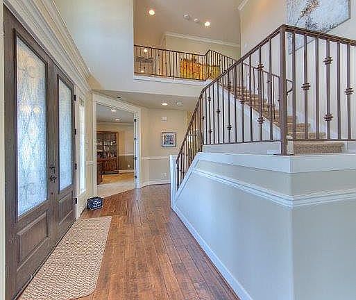 Solid 10' doors & vaulted ceilings make a grand entrance to this luxurious home. Hand scraped hardwoods lead you by one of the fireplaces on the main floor. Dining enjoys its own covered patio. Chefs dream kitchen boasts professional series Viking appliances including dual sinks topped off by beautiful slab granite. Expansive Master features H/H custom closets, dual shower heads & soaker tub. Bonus room w/wet bar can easily be 5th BR. Fully fenced backyard enjoys a gas fire pit to top it all off