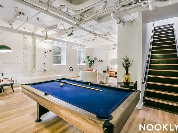 The building includes a fitness center, elevator, co-working space, secure bike storage, and package lockers, all enhanced by a high-security LATCH system with keyless entry. After a long day, unwind on the rooftop and take in the stunning 360 view of Brooklyn and the city skyline.