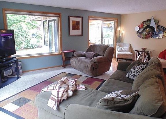 Excellent View Ridge location. This home really sparkles! Absolute move in condition, cedar sunroom w/ gas fireplace, updated kitchen w/ gas FP, built in hutch & skylights. Hardwoods, solid fir doors, Trex deck, New Roof, vinyl windows, heat pump, gas heat & hot water, full bath off Master. Fully fenced backyard, Brick Paver Patio, sprinkler system, circular driveway, covered BBQ area, garden shed & more! Close to Boeing and nestled between two parks Howarth & Forest Park. Walk to the beach.