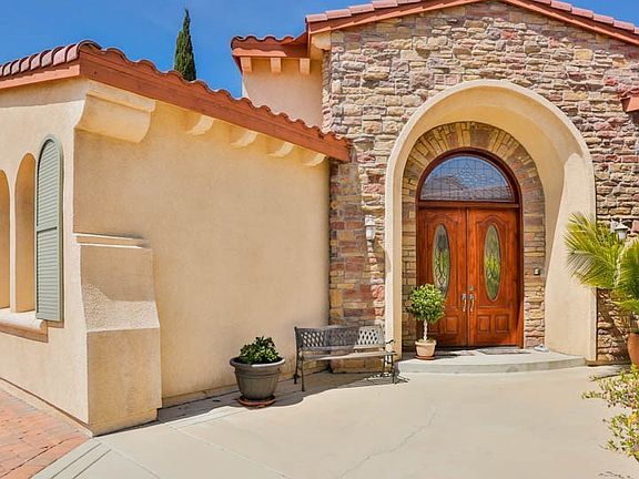 Spectacular single story home with stunning views. Built in 2008, this Italian Villa is perched on top of a knoll situated on a 22,846 sq ft lot. Private rear yard with patio area. Nicely designed floor plan with an inviting double door entry to the gracious foyer and vaulted ceilings. This home features 3 bedrooms and 3 baths, large open floor plan with 2950 sq ft of living space, Open kitchen with stainless appliances, island with breakfast bar & granite counter tops, spacious living room with fireplace, formal dining room, large master retreat with incredible views, large walk in closet. Master bath has a separate tub and shower. Hobby room can easily be used as a 4th bedroom or theater room. Indoor laundry. Wood style floors, crown molding, double pane windows throughout. Recessed lighting. Carpet in the bedrooms. The covered patio is off of the living room and master bedroom. Over sized 2 car garage with epoxy flooring. Dual A/C & furnace.
