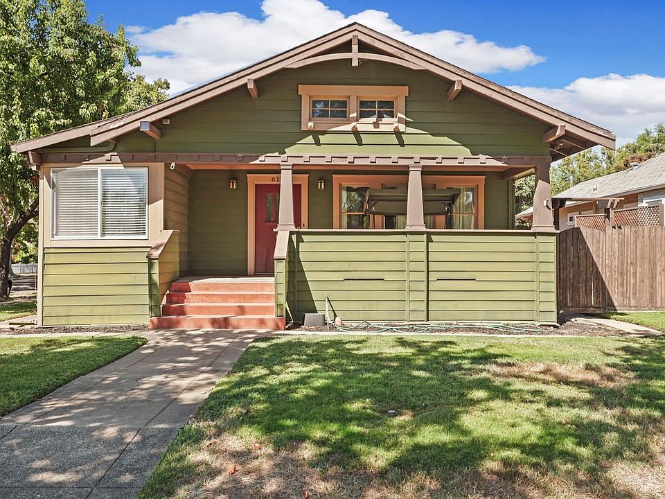 Charming 1920s Craftsman on a corner lot in the heart of downtown Lodi! This 3-bedroom, 1.5-bath home offers just over 2,000 sq ft with original wood floors, vintage attributes, and tasteful updates. The main level features two bedrooms with walk-in closets, a full bath, spacious living room, and a versatile flex space with wrap-around windows perfect for an office, playroom, or sunroom. The kitchen boasts granite counters, dining bar, and stainless steel appliances. Upstairs space includes walk-in closet and private half bath ideal for a third bedroom or creative space. An unfinished basement provides excellent storage. Enjoy the peaceful backyard with patio and lawn plus a 1-car garage for convenience. All this just minutes from downtown restaurants, shops, and entertainment!
