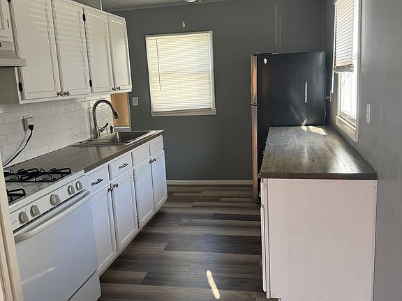 Completely renovated beautiful 2 bedroom one bathroom house. New flooring and paint throughout. Remodeled kitchen, new cabinets, countertops, paint and flooring. Complete bathroom renovation. 2 bedrooms, living room, kitchen, laundry area and and enclosed back room with a fire place. Detached garage. Driveway and garage parking.