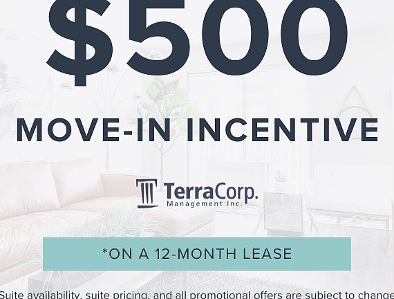 Limited Time: Get a $500 Move-In Bonus On Select SuitesGet up to $500 off on select suites today. T&C's apply.