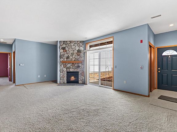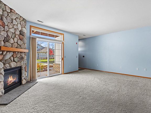 Welcome to this spacious light filled first floor condo. Cozy up by the gas fireplace and watch the snow fall out the large patio door. Entertain your family with the open kitchen and dining room. 2 car attached garage with zero step entry. Updated appliances included and in unit laundry make this condo turn key for any buyer. Double closets in the Primary en suite bedroom. Neutral decor throughout and walkable to stores and restaurants,