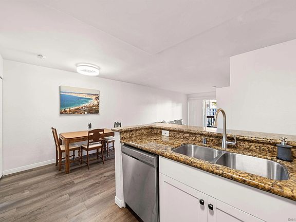 An exceptional value in the highly desirable Mission Verde community of Mission Valley, this move-in-ready ground-level 1-bedroom, 1-bath residence offers comfort, convenience, and thoughtful updates in a prime location. Fresh interior paint and an updated bathroom vanity and fixtures create a clean, modern feel, while durable luxury vinyl plank flooring flows throughout the home. The spacious living area opens directly to a private patio overlooking a peaceful common area—ideal for morning coffee or relaxed outdoor living. The kitchen provides generous cabinetry and counter space, and the bedroom is complemented by additional hallway closets, offering excellent storage rarely found in homes of this size. Additional features include a newer air conditioning unit, dual-pane windows and sliding door, assigned parking, and a dedicated storage closet. Mission Verde is a well-maintained, pet-friendly community with resort-style amenities, including a pool, spa, fitness center/clubhouse, tennis and basketball courts, and a large community laundry facility. Ideally situated near Snapdragon Stadium, shopping, dining, public transportation, and major freeway access, this home offers easy access to everything Mission Valley has to offer. VA and FHA approved, making it an excellent opportunity for both owner-occupants and investors.
