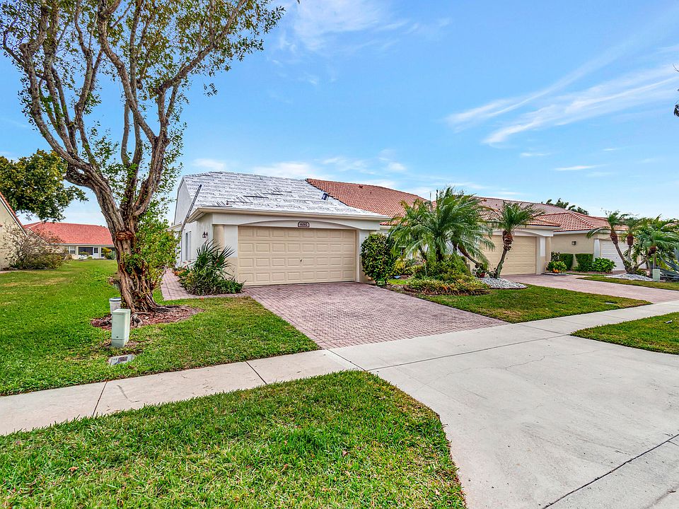 Welcome to the Floral Lakes Community! Dive into vibrant 55+ living in charming Delray Beach. Our recently renovated clubhouse offers a plethora of amenities, including 2 pools, a fully equipped fitness center, and an array of clubs and activities tailored to your interests. Picture yourself enjoying friendly games of pickleball or tennis, followed by a leisurely stroll around the scenic grounds. Situated just minutes from downtown Delray, shopping, and beaches, convenience is at your fingertips. Plus, with low HOA fees and a pet-friendly policy, worry-free living is assured. This spacious 3-bed, 2-bath sanctuary boasts a BRAND NEW ROOF and a 2-car garage. But what truly sets it apart is the mesmerizing LAKE VIEW , which you can enjoy from your private lanai , & a large eat in kitchen.