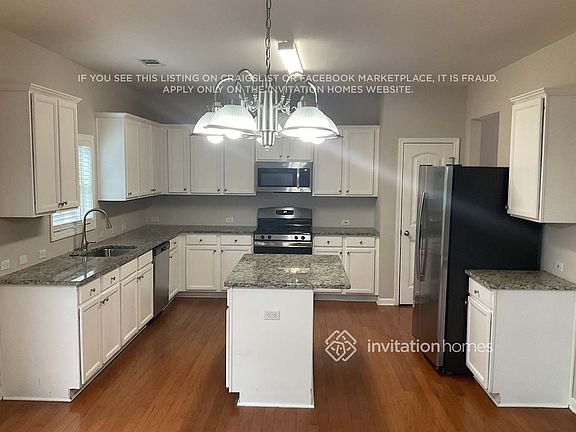 Home Features and Amenities: Air Conditioning, Covered Porch, Fenced Yard, Fireplace, Garage, Granite Countertops, Hardwood Floors, Kitchen Island, Long Lease Terms, Patio, Pet Friendly, Smart Home, Stainless Steel Appliances, W/D Hookups, and professionally managed by Invitation Homes.