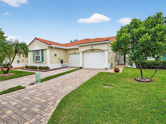 Must see this spacious 2 bedroom/2bath villa with a NEW ROOF (2023), NEW AC (2024), HOT WATER HEATER (2022). Bathrooms are upgraded with NEW CABINETRY&COUNTERTOPS (2025). All rooms FRESHLY PAINTED! This popular model features vaulted ceilings, oversize ceramic and wood-look tile flooring. Enjoy kitchen with stainless steel appliances and granite countertops. Enclosed screened patio and accordion shutters. The upgraded paver driveway and walkway enhance the beauty of this home. This active adult community features a renovated clubhouse with a ballroom, library/card room, gym, sauna, crafts, billiards, shows, clubs and more! Enjoy the 2 pools, tennis/pickle ball, bocce, putting green, shuffleboard. Social director and manager on site! LOW HOA FEE! with cable/internet. Furniture available.