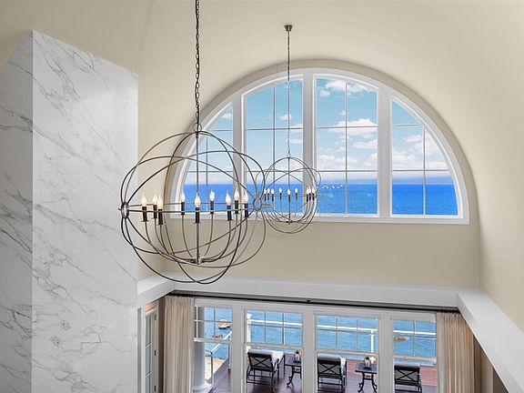 Soaring two-story fireplaceBeach patioDramatic barrel-vaulted great roomWalkout lower levelMasterfully designed floorplanThree-season porchFrench doors