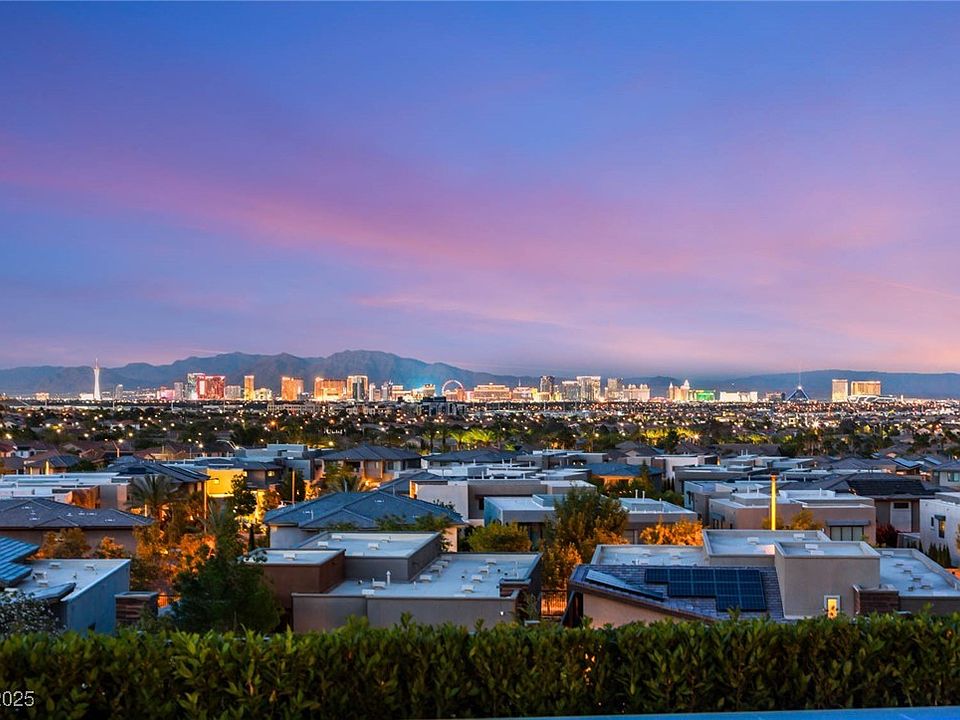 Never occupied—this fully upgraded modern luxury home features all brand-new fixtures and appliances throughout. Thoughtfully designed with custom cabinetry, designer flooring, Wolf appliances, electric blinds, collapsible pocket doors, and a full smart home system with cameras and surround sound. Enjoy seamless indoor-outdoor living with built-in TVs, a custom outdoor kitchen complete with BBQ, ice maker, refrigerator, sink, and TV, plus a fire pit, infinity-edge pool, and spa—all showcasing breathtaking, unobstructed Strip views. Located in a gated enclave within The Cliffs at Summerlin South, this home offers 3 bedrooms with en-suite baths, an oversized walk-in shower in the primary suite, and a separate office with custom built-ins and stunning city and Strip views.