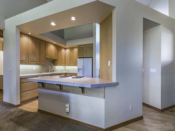Move right into this hard-to-find single level home in the Fall Creek area of Broken Top. The great room has a gas fireplace and huge wood-wrapped windows that complement the high ceiling. There is a spacious master suite with 2 walk-in closets, plus two additional bedrooms-each with its own bathroom. Freshly painted interior, hardwood, newer carpet, and tile counters. Enjoy exquisite views overlooking the 5th green & lake. Maintenance of the beautifully landscaped lot is included in the HOA dues.