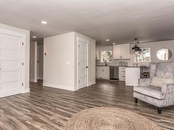 This house becomes a home immediately upon entry. Brand new interior & systems from the ground-up in this single-level hard-to-find SE Bend home that features architectural clean-lines that surround you in quality from every angle. Stunning wood beamed living room ceiling, stone surround gas fireplace that creates a wonderful focal point, great room concept w/separation for family room that opens to cook's dream peninsula kitchen w/breakfast bar, new SS appliances & subway tile, decretive fixtures. Marvelous master w/spa-like ensuite offers double sinks & walk-in closet. Amenities include quartz counters, engineered composite flooring, the new front landscaping, new asphalt drive-way, backyard completely fenced will be installed as soon as weather permits. A new wood deck for you to relax & listen to the seasonal canal that runs in the backyard. Large lot .72 acre, excellent SE Bend location close to schools, shopping, medical & easy access to all main arterials. Welcome home!