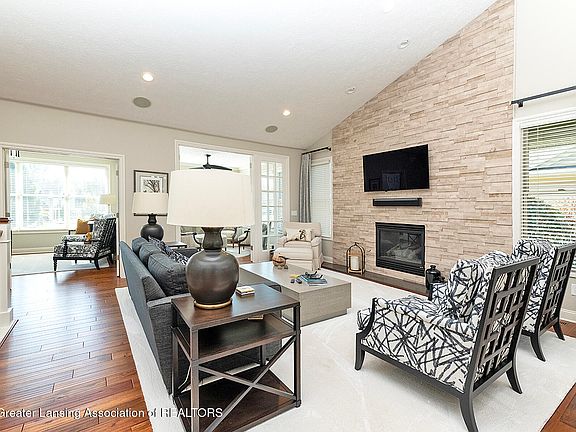 ****Welcome to 6198 Graebear Trail**** This stunning home showcases the owner's impeccable care and attention to detail. From the moment you step inside, you'll feel like you're on vacation, surrounded by breathtaking waterfront views from every window. The gorgeous kitchen boasts brand-new cabinetry, appliances, and countertops. The 1st floor features an elegant great room with vaulted ceilings, a sunroom, a spacious primary suite, a 2nd bedroom/office, and a laundry room. The walkout lower level is perfect for entertaining with a large family room, wet bar, 3rd bedroom, exercise room, and even a golf simulator. Step outside onto the sunny patio to take in the serene views. Plus, there's an attached 3-car garage! Just minutes from everything, yet tucked away in a peaceful setting.