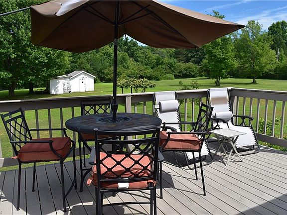 Beautifully Maintained 3 Bedroom & 2 Bath home set on 1.5 Acres! Great living space with updated Kitchen & Baths and freshly painted interior throughout. Step up to the main living space with all new wood flooring in the spacious Living Room, completely remodeled Kitchen & Dining Room with sliders to wood deck. 3 Bedrooms on main level have new carpeting including the Master Bedroom & updated Full Bath with ceramic floors, new vanity & fixtures. Finished lower level includes large Family Room, full bath, laundry room & additional room that could be used as 4th Bedroom or Teen Suite with separate access to garage. Newer central air. Manicured yard with wood deck & concrete patio to enjoy wooded views. Double wide concrete driveway & 2-car attached garage. Storage shed. Close to freeway access.