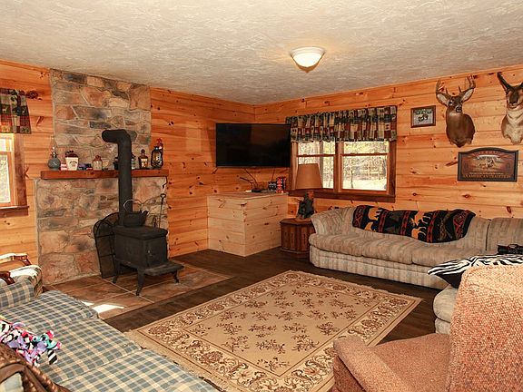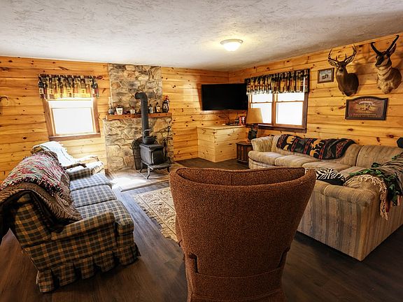 Tucked into the woods, this charming cabin can be a your private retreat from the world but also serve as a year round home. Features include wonderful Great Room with new flooring, wood stove, kitchen island. 1st floor bedroom and large full bath then move upstairs to 2 nice sized bedrooms. Lower level features small family room area with new flooring and bunk beds for those extra guests as well as a 3/4 bath. 1 car garage, multi fuel heating, central air. Nice sized deck as well as large covered porch out front so you can see nature from every aspect in this well maintained home. Easy distance to Raystown Resort, Tatman Run boat Launch AND State Forest! Recreation at your fingertips!