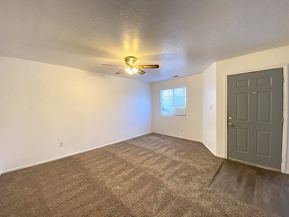 Viewings - please register with Rentlycom. We show our properties with an automated lockbox system. 4 Plex in Rio Rancho. 2 Bedroom/1 Bath. Open floor plan. Living with ceiling fan. Dining area off kitchen. Kitchen includes refrigerator, gas stove, dishwasher and disposal. New Carpet and Fresh Paint throughout. Full hall bath, single vanity, tub/shower combo. Laundry room off hall bathroom, washer hook-up, dryer gas or electric hook-up. Back yard and outdoor storage closet for tenant use. Evaporative cooling. Directions: North on Unser Blvd, West on Abrazo Rd, left on Tulip Rd (4 plex on south side of road. List of fees that may be charged in addition to your rent and security deposit. See lease for details. Application fee - $50. Last month's rent (if applicable). Late Fee - 5% of rent. Pet Fee - $30-50 per pet per month. Nsf Fee - $35. Posting fee - $50. Missed Appointment fee - $50. Lock Out Fee - $25. Early Termination Fee - 2x monthly rent. HOA Violation Fines as charged by the Hoa. HOA Violation Processing Fee - $25. Hold Over Fee - $250 per month increase in rent. Lease Change Fee - $75. Move Out Cancellation Fee - $250. Unpaid Utility Fee - $35. Missing/Expired Insurance Fee - $25. Missing/Expired Animal Profile Fee - $50. Moved Appliance Fee - $150. Credit Card Processing Fee - set by the payment processing company. E-check Processing Fee - set by the payment processing company. Utilities are paid by the tenant either directly to the utility or charged by Landlord. Dishwasher, Disposal, Gas Stove, Oven, Refrigerator, Carpet, Laminate, Dining Room, Living Room, Blinds, Storage, Washer Dryer Hookups, Fence & Pet Friendly.