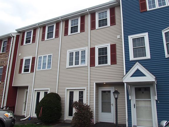 Beautiful and updated Fox Meadow condo that you don't want to miss! This pet friendly condo has a tennis court and swimming pool and is located in a back, private location with no other unit behind. Two (2) parking spaces in front. Enter the welcoming foyer and view all the amenities which include: central air, 3 zone heat and AC, hardwood staircase, gleaming laminate wood and ceramic tile floors. Beautifully equipped new kitchen with stainless steel appliances, maple cabinets, marble backsplash and granite countertops as well as a large pantry closet. Lovely finished room in the basement with ceramic tile floor, closet and patio doors to the outside. New full bath. New front and storm door. New siding, windows, roof and composite deck in 2019. Great commuter location and easy access to the T. Call today as this one won't last long!