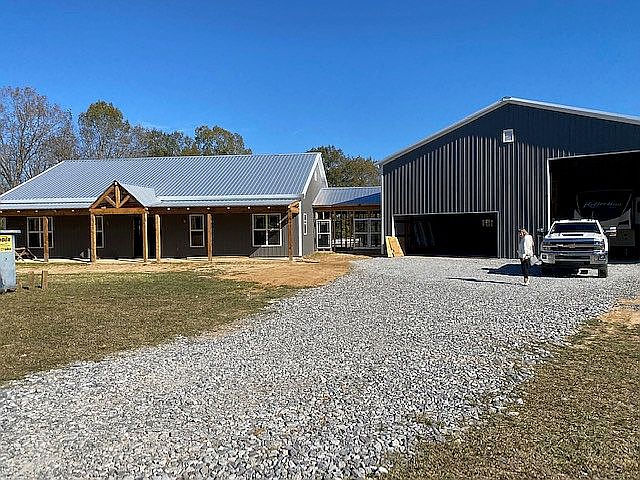 Finished and ready to sell - almost 6 acres of country living at it’s absolute best. Perfect location 10 miles from Starkville, West Point or Columbus. Lowndes county with lower taxes and the best neighbors! Mayhew Tomato farm makes fresh produce a daily pleasure. This modern gray with white accents- metal home showcases a custom cedar post and beam front porch spanning the entire width inviting you inside. Soaring 14’ tongue and groove ceilings cut, milled and purchased in Kentucky highlight the open concept living room. Featuring a custom kitchen with a 4x10 granite island, separate coffee bar w prep sink and custom cabinetry throughout. Laundry room with maximum cabinetry, and 10’ ceilings make for a spacious home. Spectacular view out back loaded with windows to the lower acreage. Sunroom is a huge 636 square feet featuring the same vaulted tongue and groove ceiling and is the perfect entertaining space designed for family cookouts or parties. Covered back porch runs entire home, over 60' and wired for outdoor covered kitchen. The attached insulated garage/workshop/RV storage is a man’s dream. A whopping 2,300 sf provides 3 custom garage doors, 2 car garage and a 450+ sf workshop with a 10’ garage door for projects. Above the workshop features wide stairs and floored storage with railings. The RV bay is 23x47x16 fully set up with water, power, cable tv and sewer hook ups. This house and acreage have it all.