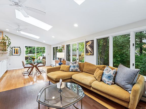 So much natural light! Bright and inviting, this lovely 4 bedroom Colonial has been completely updated yet maintains its historic charm with built-ins around the fireplace, corner hutches in the dining room and wood floors throughout. The beautifully remodeled kitchen, eat-in area and adjacent family room are drenched in light from the many windows and skylights. The kitchen with its abundant custom cabinetry, vented hood and expansive counter space provide a luxurious heart of the home. An inviting sunroom, both family and formal living rooms, back deck overlooking a wooded, fully fenced private yard and a beautiful stone patio present fabulous options for entertaining or enjoying quiet moments. The partially finished basement with a fireplace offers versatile living space as well as expansive storage options. A huge unfinished area in the basement has an exterior door and a wall of windows filling the space with light and offering excellent expansion possibilities. Brand new roof and chimney repointing, new exterior paint and landscaping, new front storm door, newly refinished floors, improved heating system and many other updates offer move-in ready ease. Situated near Westmoor Park between Bishop's Corner and West Hartford Center/Blue Back Square in the Bugbee school district, this home is a must see!