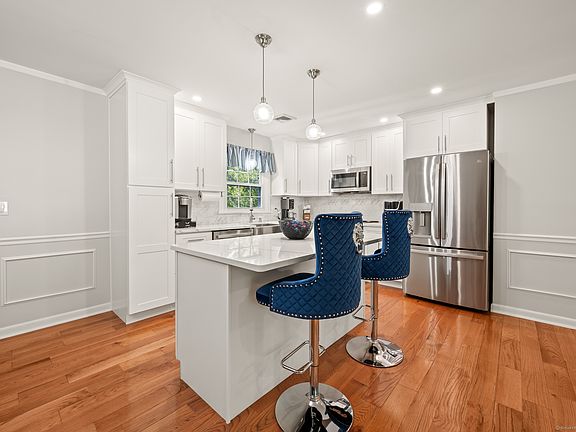 Welcome to 62 BrambleBush Rd! This updated raised ranch blends style and comfort with plenty of space to spread out. From the repaved driveway and brick walkway to the modern grey tones, every detail has been cared for. There's many memories created in this open-concept floor plan that features new hardwood floors, recessed lighting, and a chef's kitchen with shaker cabinets, quartz counters, farm sink, stainless appliances, and a bright island for casual dining. Relax in the heated sunroom with walls of windows where the sun gleams in all morning perfect for morning coffee. Or step out onto the deck overlooking a spacious backyard. The primary suite is a true retreat with a spa-like bath, tiled shower, and mosaic accents, while the hallway bath offers a deep soaking tub. The lower level expands your living options with a cozy family room, fireplace, sliders to the brick patio, plus a half bath, laundry, and storage. Updates include roof (2022) and windows (2023), ensuring peace of mind. A backyard shed adds convenience. Located in the sought-after Keney neighborhood, with easy access to I-84/I-384, this home is perfect for commuters while offering a quiet retreat. Move-in ready and designed for making memories-schedule your showing today! Highest and Best By Noon of 9/30/25!