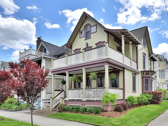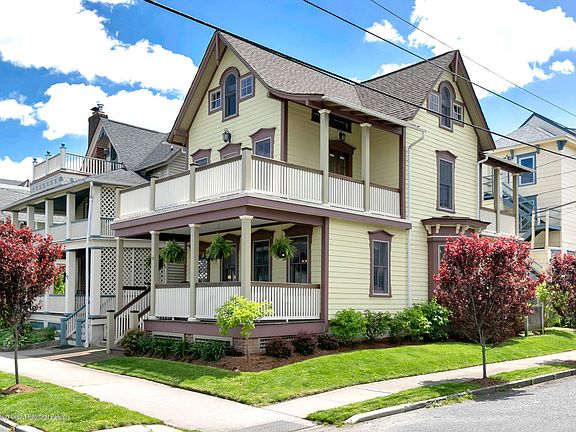 A Broadway gem. This Beersheba Award Winning, architecturally redesigned, and gut renovated corner property on the third beach block features 5 bedrooms and 3.5 baths. Enjoy refreshing breezes and views of Broadway's historic homes from the 1st fl mahogany porch, 2nd wrap-around porch through the Master Bedroom's french doors, not to mention a third Juliet porch. A unique and private fenced-in back patio accommodates outdoor grilling and festivities. Tastefully landscaped grounds with 5 new plum trees and an underground sprinkler system. Inside, enjoy an open floor plan with light streaming in from northern, western, and southern exposures, high-end appliances, tile, and granite, plus a house-wide sound system. Nearby beaches, and the best of Ocean Grove, Asbury Park and Bradley Beach.