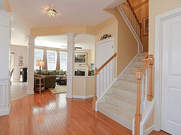 Your new home is waiting for you! This Jamison-style end unit has been well maintained and has an open floor plan with plenty of natural light. Kitchen with lots of cabinets and granite counters has a center island and pantry. the good size eat in area looks out on your deck and private backyard. Hardwood floors in the dining room and living room. Gas fireplace graces the living room. Half bath and separate laundry room finishes the first floor. Upstairs you have a beautiful primary bedroom and bathroom with double vanity. Additionally, there are two good size bedrooms (one is being used as an office) and full bath. Basement is ready for you to finish for even more space. Two car garage. Location gives you great highway access, close to stores and restaurants!
