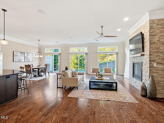 Soaring ceilings and spectacular millwork abound in this former model townhome by Viscusi Home Builders. You'll love the bright, open floor plan with over $60k in upgrades. On the first floor, you'll find Schrock cabinets, custom lighting, high-end appliances, a tile backsplash, and a large island. A floor-to-ceiling, stone-clad gas fireplace is the hi-light of the living room. Hardwood flooring runs both downstairs and up, while upgraded crown moulding adorns the tall ceilings. Upstairs are three spacious bedrooms, including a spa-like primary bath and extra closet/flex/office space. Rounding out the home are a two-car garage and a private, oversized back patio that backs to woods, accessible from three sets of sliding glass doors. Additional features include a sound system, first-floor laundry, and pre-wired security. The Village at Shaker Creek offers a maintenance-free lifestyle with snow removal and lawn care included—steps to restaurants, coffee shops, gyms, and boutiques. A short drive to Albany Airport, Amtrak, and central to everything else Colonie has to offer.