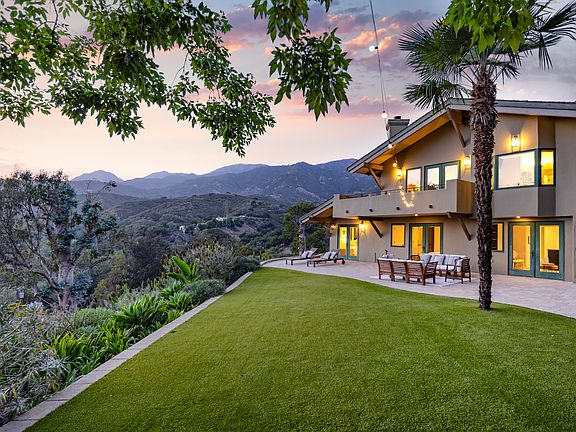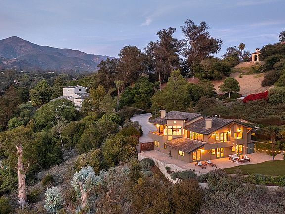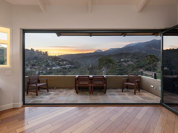 Situated above Sycamore Canyon on Montecito's western edge, 62 Canon View is a stunning contemporary retreat that offers privacy, quality, and breathtaking mountain and canyon views. Located in the Eucalyptus Knolls community and within the award-winning Cold Springs School District, this gorgeous four bedroom, three- and one-half bath home on a private one-acre parcel provides a serene sanctuary just minutes from both Coast Village Road and Downtown Santa Barbara. Quality construction is evident from the moment one passes through the large custom copper front door. Views abound from nearly every room, deck, and patio. The open floor plan seamlessly integrates the main living areas, including the kitchen, dining, and living rooms, all of which feature soaring ceilings and hardwood floors. A cozy fireplace anchors the living room, and a dramatic six-panel bi-fold glass wall perfectly frames the stunning view of Cathedral Peak.