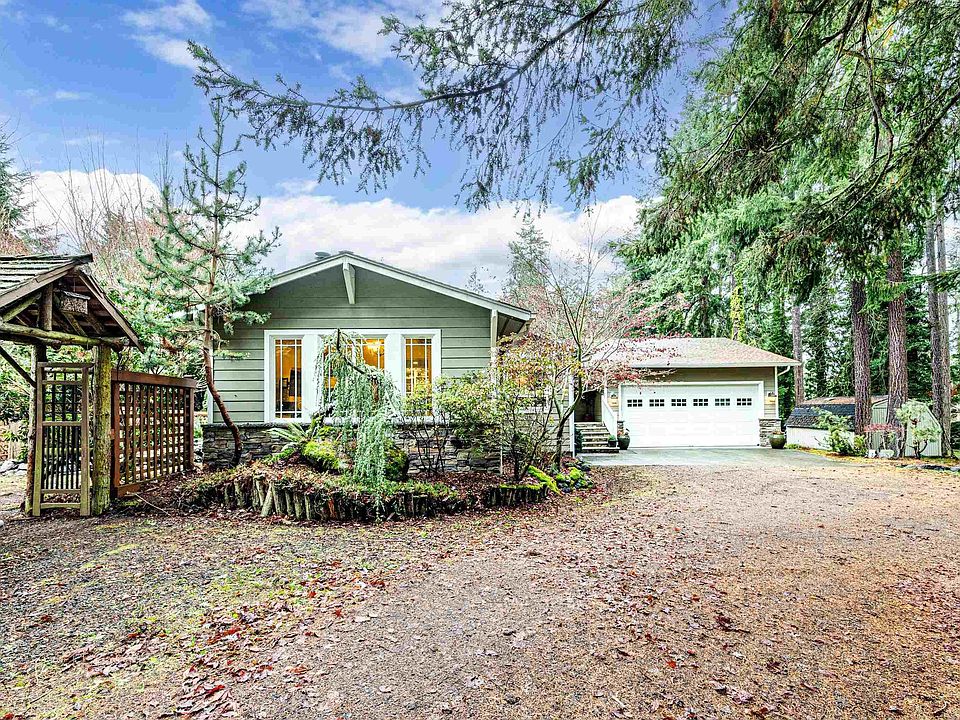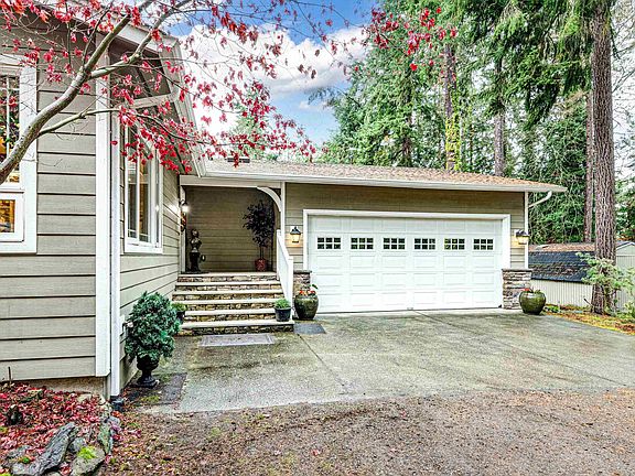 Welcome to your private oasis with a partial mountain view! This, 3 bed 2 bath 2 car attached garage home w/wood burning stove offers 1944 sq ft of living space upstairs and a partially finished expansive 1560 sq ft walk out basement. Home is nestled on 1.34 acres with beautiful outdoor spaces, gardens, a tranquil water feature, wrap around deck to enjoy entertaining and relaxing on. Inside, enjoy open living space including a large living room w/built in cabinets, lots of shelving and beamed coffered ceilings. Kitchen is large with eat in bar, quartz countertops and dining room with built in buffet, butlers pantry and French doors that lead to the deck. The primary suite includes and en' suite bath and French doors leading to a private balcony. A perfect blend of comfort, charm and craftsmanship.