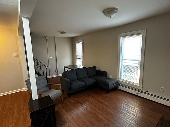 Spacious 2-bedroom, bathroom apartment with 2 stories. The first floor boasts the large living room and kitchen with access to laundry off of the kitchen. The second floor has the 2 bedrooms and bathroom.