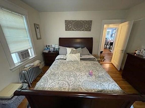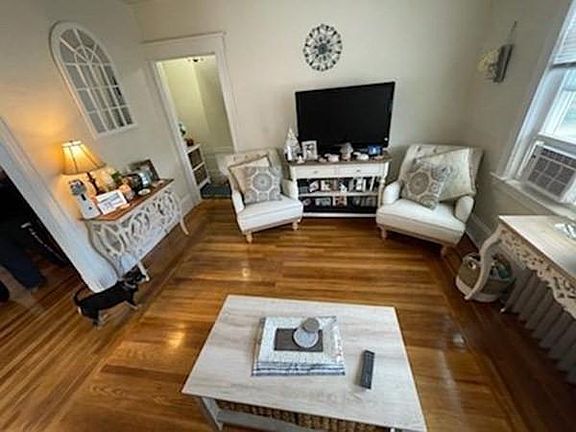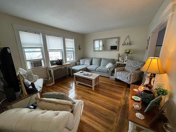 Unit features a fully applianced eat-in kitchen with formal living and dining room, and a sunny living room plus an enclosed porch and ample closet space in the unit. Hardwood floors throughout. 2 Wall AC's. W/D in basement. Balcony. Two off-street parking, Close to Belmont parks, Redline, Commuter Rail, Public Transportation to Harvard Square, Dunkin Donuts, shoppes and restaurants.