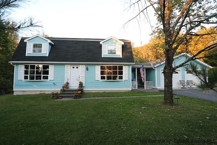 Nestled between the Catskills and the Hudson River Valley on a dead end quiet road, you will find the perfect place to call home. This 4 bedroom 2 ½ bath gambrel roof cape is perfect in every way, starting with the beautiful curb appeal. The tree lined front yard sets the stage for the private feel that will captivate you once you pull up to this enchanted property. Step inside and fall in love with the well throughout floor plan. Immediately notice the array of natural light and scenic views from the bay windows in the welcoming living room and dining room. The kitchen is designed with care to details a chef would look for but a novice would appreciate. With three nice size bedrooms on the second floor the first floor bedroom with his and her closets, could be used as an office or den. Large master bedroom with reading nook, his and her closets and a private half bath is roomy enough for a king size bed. Once you step out into the back yard you will know for sure this is home sweet home. The wood lined Private back yard features a patio with a roof overhang that provides a cool sheltered area to enjoy your morning coffee while watching the deer meander on by. Enjoy an evening night cap in the inviting breezeway that connects the 800+/- square foot 3 car garage with custom built workbench, desk and overhead storage, to the side kitchen entrance. Other features that can't be over looked are the large, dry full basement, new roof, 2 zone central air, the separate driveway for both a boat and RV, and the total love and devotions the present owners have given to this home.