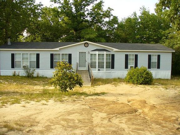 Really nice Mobile Home. The homes has been taken very good care. The kitchen opens into a den with fireplace and breakfast area. The dining room and living room is separated from kitchen by french doors. Yard is fenced. A total of 5.9 acres. Front is level and a stream in the back of the yard. Deck on back.