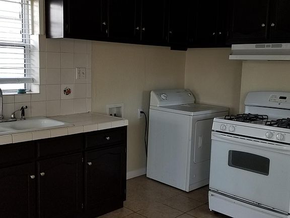 Lease this unfurnished renovated 2 bedroom, 1 bath house. This is the front house and there are two houses on this property but they are not attached. Tile floors in all the house. Stove and washer and dryer hookups. Window A/C in bedroom. Good heating. Close to freeways and shopping. Unit is clean and ready for new tenants.