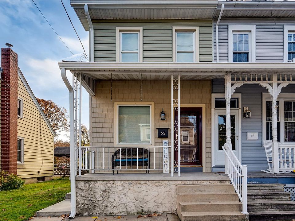Welcome to 62 E. High Street in Womelsdorf, PA! This beautifully upgraded 3-bedroom, 1.5-bathroom semi-detached home is a rare find, blending modern amenities with affordability, priced perfectly for first-time homebuyers. Set in the desirable Conrad Weiser School District and ideally located for commuters heading into Lebanon, Lancaster, or Berks counties, this property offers exceptional access for professionals. Inside, nearly every detail has been carefully updated over the last 5 years. Enjoy peace of mind with new windows, a new roof, vinyl siding, new doors, and the energy efficiency of a tankless natural gas hot water system, central air, and a gas heater. All appliances are included, featuring a stainless steel kitchen suite, plus a stackable washer and dryer. The main living areas are thoughtfully designed with a spacious feel. The living room boasts luxury vinyl plank flooring, recessed lighting, and a ceiling fan, opening to a dining room that features a stylish stone accent wall. The kitchen, fully renovated in 2024, is complete with 26-handle cabinetry, granite countertops, a deep stainless sink, and tile flooring. Off the kitchen, there is a tiled half bath, access to the rear yard via a new composite staircase. Upstairs, relax in the expansive main bathroom with an 8' double vanity, tiled tub/shower, and a convenient laundry area, with stackable washer/dryer, and granite folding station. The second floor includes two carpeted bedrooms with ceiling fans, while the third floor, fully renovated in 2024, is filled with natural light from multiple windows, making it a perfect third bedroom or flex space. This property has been meticulously transformed, and once you're inside, you'll be confident this is the one! Schedule your showing today!