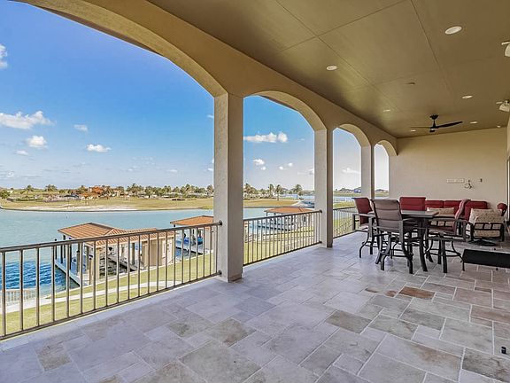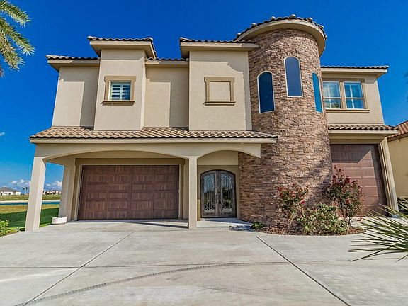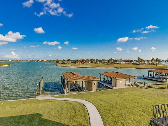 A life of luxury awaits you in this custom built Mediterranean style water front home. Beautiful grand entry features double doors, curved staircase, and high ceilings. On the main level you will find an awesome gourmet kitchen made for entertaining featuring custom cabinetry, granite counters, travertine tile back splash, large walk-in pantry, all GE appliances, 2 ovens, and an over sized island. Living room and kitchen boast views of the water. The larger of the 2 master bedrooms has French doors going out to back patio, with master bathroom offering separate tub, large walk-in shower with seamless glass, heated seat, and rain style shower faucets. Master bathroom also has a double vanity along with huge walk-in closets. Flooring in home is a mixture of hardwood and gorgeous travertine tile. Boat house is equipped with 24,000lb 15'x40' lift with 2-50 amp, 2-30 amp plugs. Offshore slip is 21'11" x 42". Garage has full RV hookup and oversize doors which are big enough to hold