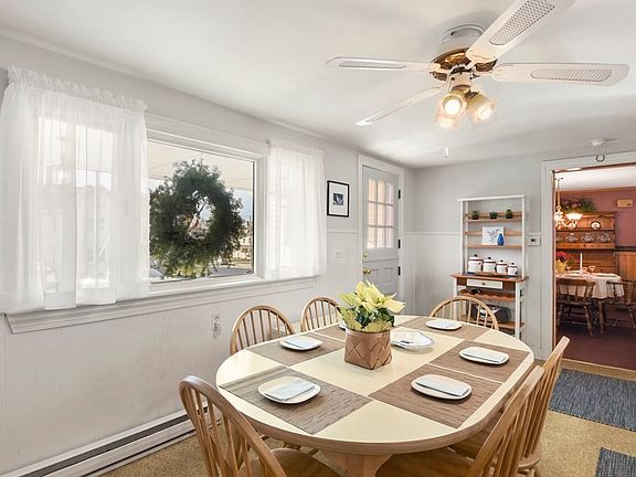 This meticulously maintained 3-bedroom, 1-1/2-bathroom home is in the heart of town & is ultra-convenient to absolutely everything! Set back from the road & surrounded by a stonewall, it has a prominent stance w/ driveway leading to expansive, private & fenced backyard. This charming house features: eat-in kitchen; formal dining rm; cozy den & nice living rm w/coat closet & hardwood flrs; spacious master bdrm w/walk-in closet & master bath; 3-season bright & airy windowed porch; covered patio; detached 2-story garage w/bonus heated "work -from-home" and/or living space w/tons of storage; lg driveway w/ample parking; 2 walk-up attics; updated furnace & oil tank; basement w/work bench; brand new roofing as of 10/2019. (Rare value-added opportunity to host a small business from home in detached, dedicated space w/ robust market exposure in a prime location that is zoned appropriately.) This well-built New England home has been lovingly cared for & is ready for you to come take a look!