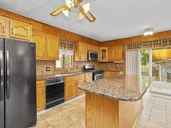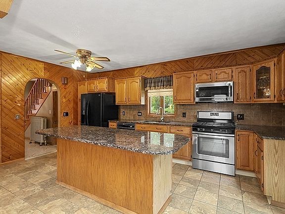 This four bedroom Conventional home is ready for it's next chapter. With many updates, such as a brand new roof, new windows with a lifetime guarantee, and a recent conversion from oil heat, to natural gas. The main floor features an open floor plan, with hardwood flooring throughout the dining, and living rooms. The modern kitchen features, stone countertops, tile flooring, and large center island. The gas range, and microwave are also newer. The second level features three large bedrooms, with hardwood flooring, there is also a fourth bedroom, smaller in size, but perfect for a young child. The basement is finished with a full bath, and second kitchen.The slider opens up to a deck, overlooking the backyard, with many perennial plantings. The single car garage, with attached shed, was used for storage,and work area. The backyard is fenced in, and features a sprinkler system, powered by well water