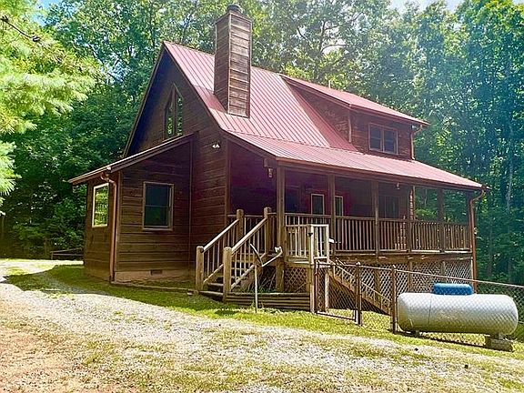 Escape the hustle and bustle of city life at this stunning private mountain retreat! Nestled on 2 acres, this 2-bedroom, 2.5 bath Cabin Home provides a spacious 1880 square feet of mountain living with a full partially finished basement. Perfect for getting away from it all! Step inside and prepare to be amazed! This open floor plan home is flooded with natural light, boasting a roomy loft area and the perfect blend of wood and drywall interior creates a cozy atmosphere. The spacious master bedroom includes a walk-in closet, while the vaulted ceilings add an airy feel. The breakfast nook and amazing granite-topped kitchen are perfect for entertaining. And don't forget about the basement - ready for an additional bedroom or game room! Also, enjoy the 2 covered porches, a garden area, a storage building w/electric and a partially fenced yard. There is ample parking, a good spot for a garage, and a private driveway with easy access right off paved road. Great location just minutes to Blue Ridge or Blairsville. If you are looking for a home that is clean and ready to move into, look no further! Must see to appreciate, so don't miss out on this stunning mountain oasis! Some photos are digitally staged.