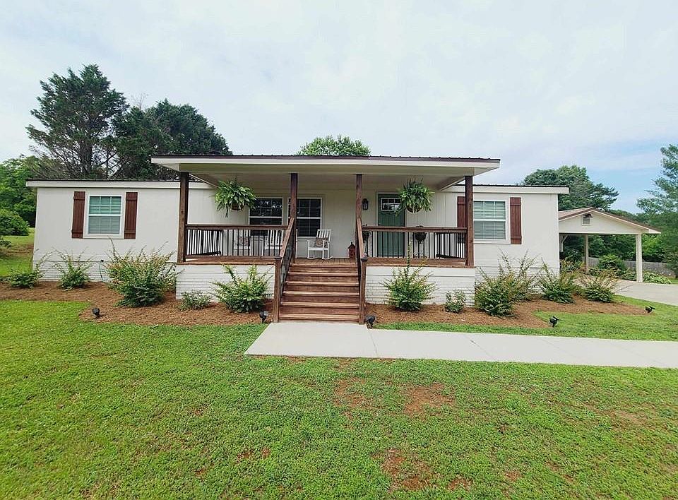 The rocking chair front porch invites you into this wonderful 3 bedroom, 2 bath move-in ready home! The living room features a fireplace with stone surround nestled between built-in bookcases with an open view to the kitchen and dining room. In the kitchen you will find wood cabinets with tiled backsplash and stainless steel appliances. French doors will take you to the covered back porch complete with an outdoor dining area, the perfect built-in grilling area, and an unobstructed view of the backyard with mature landscaping. The primary bedroom has an en-suite featuring a walk-in tiled shower, double vanities, and separate closets. This home has generously sized secondary bedrooms and a second full bath with tiled shower. The detached garage with covered carport is great for parking or use for recreational/flex space. The outdoor building has the perfect amount of storage space with electricity! All the updated options this home has to office and is only 3 miles to Interstate 85!